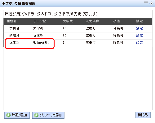 ※文字列などになっている場合は属性設定よりデータ種別の編集、更新を行ってください。