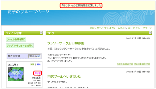 ファイル倉庫にアップしたファイルの、公開・非公開を切り替えることができます。