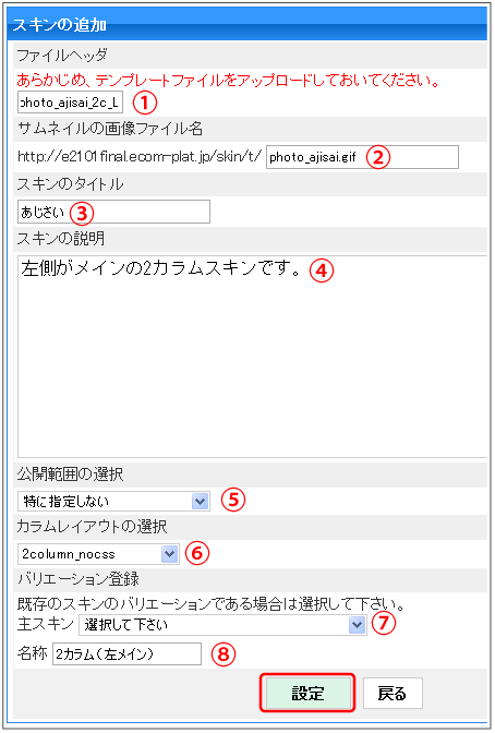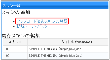 事前にFTPなどでアップロード済みのスキンの登録の仕方について説明します。