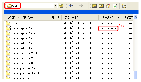 アップしたら、フォルダのパーミッションを「777」に変更しておいてください。