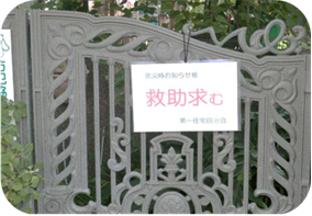 特に、安否確認訓練では、ご自宅の玄関口に「無事です。」「救助求む。」と記載した安否確認ボードを掲示し、地区にお住いの方々が各戸の状況を一目で把握し、早く報告できるよう、創意されていました。