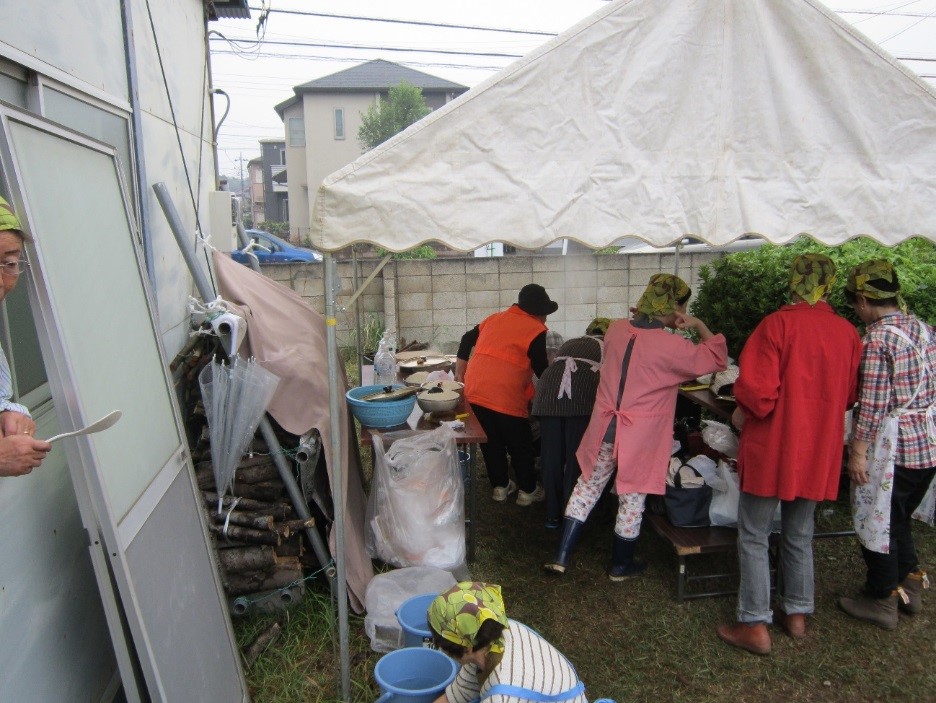 東部地区自治会連合協議会の役員の方、地域の皆さんは、訓練への参加・体験をはじめ、一部の生徒さんにとっては慣れない簡易釜戸の炊出しなどのアドバイスを行うなど、地域の協力体制をより強めている様子が見られました。