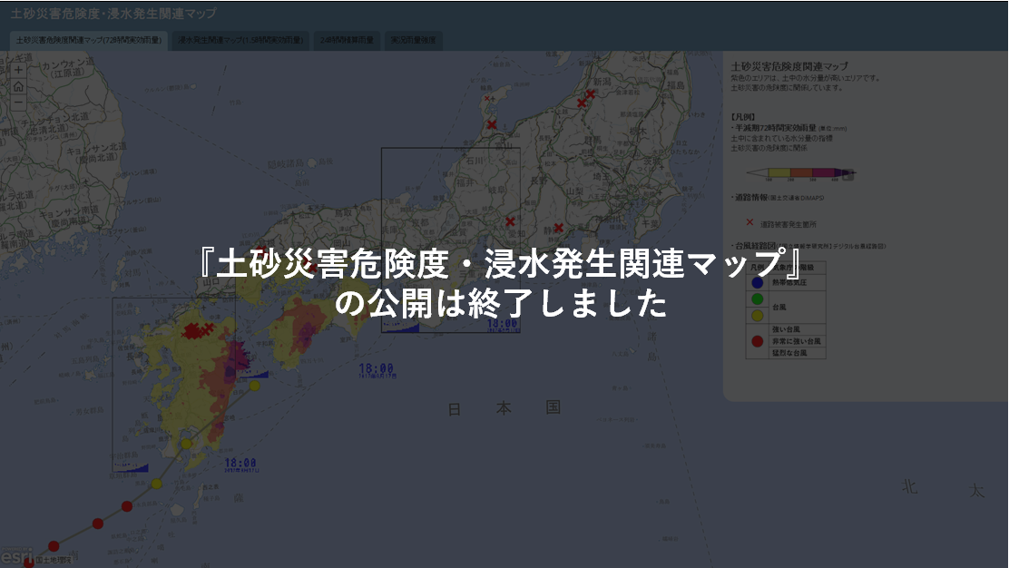 リアルタイム実効雨量に基づき、土砂災害危険度・浸水発生に関連したマップを公開(公開終了しました。)