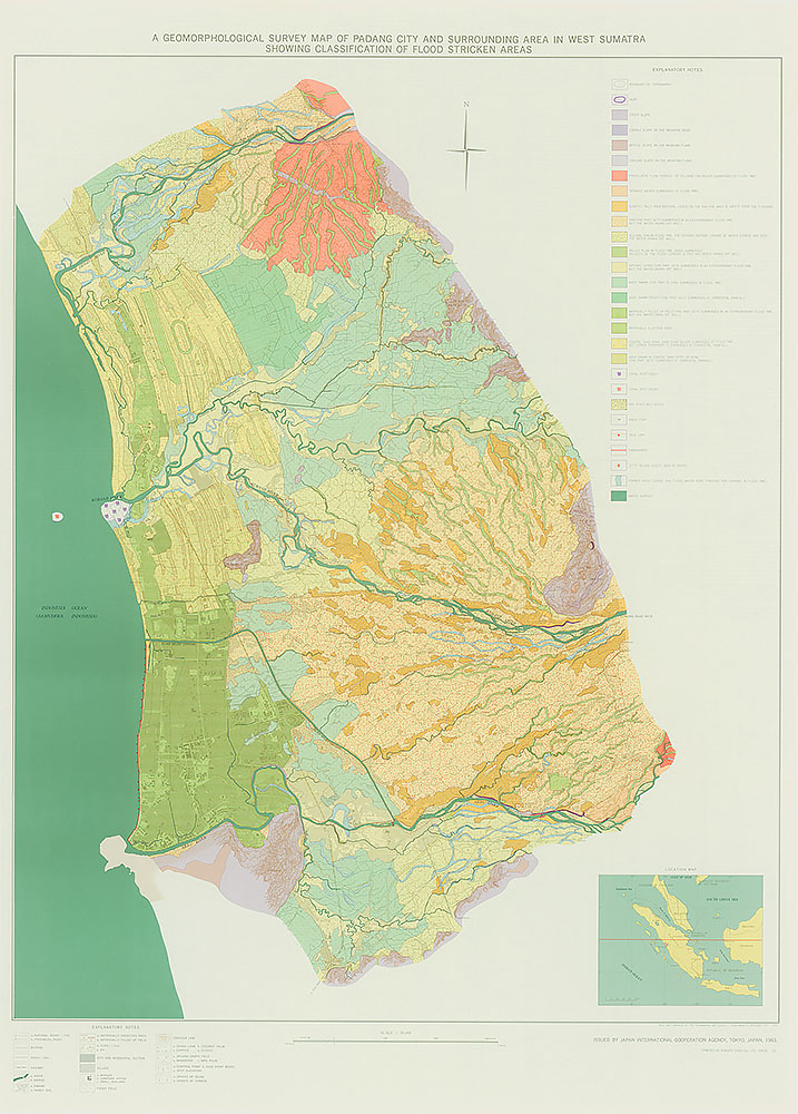 JICA(1983)A Geomorphological Survey Map of Padang City and surrounding Area in West Sumatra Showing Classification of Flood Stricken Areas(裏面)『インドネシア共和国パダン治水計画調査 主報告書』 | |